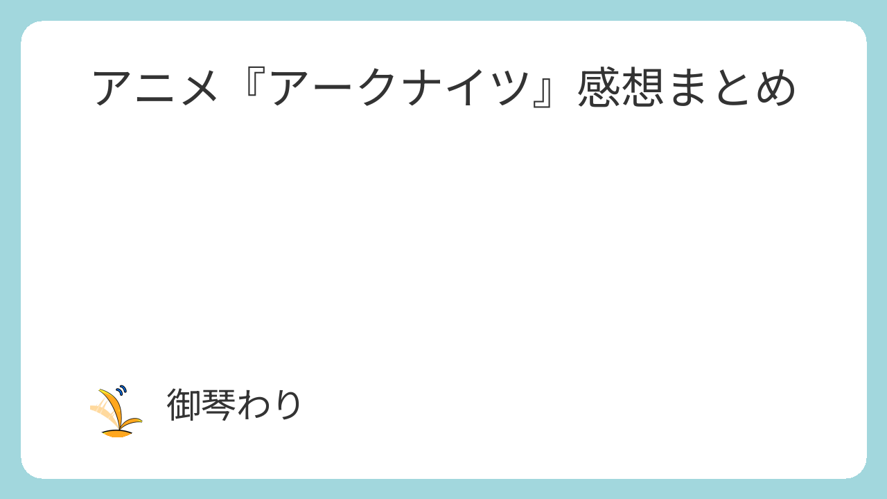 アニメ『アークナイツ』感想まとめ X Bluesky Misskey Facebook LINE コピー 2025/11/142025/11/17 『アークナイツ』感想記事一覧 アニメ『アークナイツ』の各話感想をまとめています。ネタバレ注意! アニメ アークナイツ【冬隠帰路/PERISH IN FROST】7話 感想|もう重い回しかない2025年11月11日 アニメ アークナイツ【冬隠帰路/PERISH IN FROST】6話 感想|チェンがかわいい ホシグマ登場2025年11月4日 アークナイツ アニメ【冬隠帰路/PERISH IN FROST】5話感想2025年10月28日 アークナイツ【冬隠帰路/PERISH IN FROST】4話感想2025年10月17日 アークナイツ【冬隠帰路/PERISH IN FROST】3話感想2025年10月11日 アークナイツ【冬隠帰路/PERISH IN FROST】2話感想2025年10月7日 アークナイツ【冬隠帰路/PERISH IN FROST】1話感想2025年9月29日